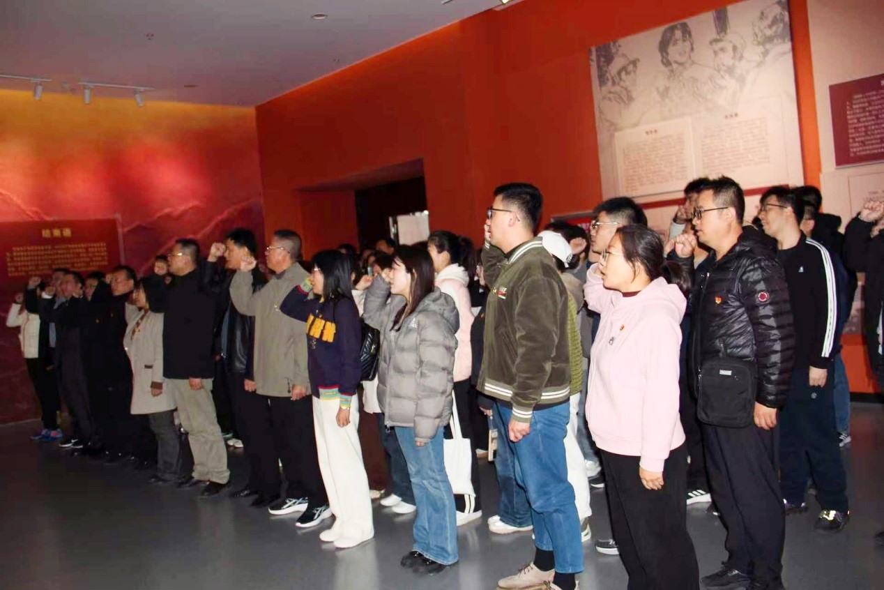 在庄严肃穆的博物馆革命历史展厅内,面对鲜红的中国共产党党旗,全体党员整齐列队,庄严举起右拳,重温入党誓词。 “我志愿加入中国共产党,拥护党的纲领,遵守党的章程……”铿锵有力的誓言回荡在展厅之中,字字千钧,凝聚着对党的无限忠诚与热爱,表达了同志们坚守初心、担当使命,为党的事业奋斗终身的坚定信念和决心。这一神圣的仪式,使在场每一位党员的心灵受到了深刻洗礼,党性修养在厚重的历史氛围中得到了进一步锤炼。