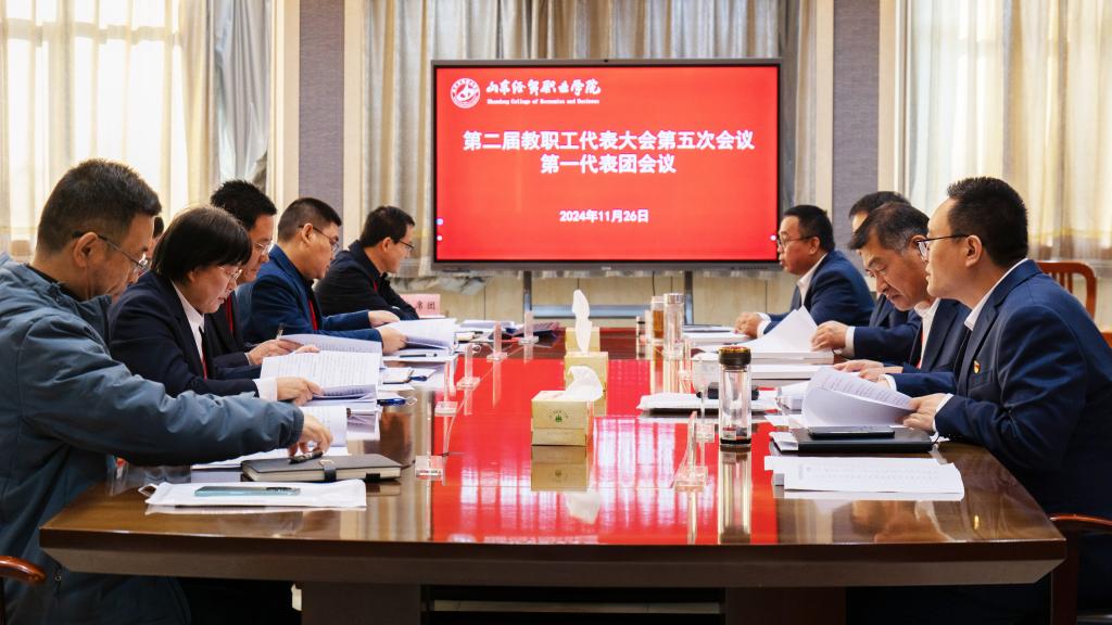 工会副主席张传国宣读了山东经贸职业明升体育_明升国际-【app*官网】第二届教职工代表大会第五次会议明升体育:通过《山东经贸职业明升体育_明升国际-【app*官网】职称评聘办法》等三个文件的决议。