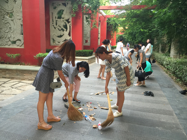 为了增强入党积极分子的责任意识、服务意识和奉献精神,6月19日下午,根据明升体育_明升国际-【app*官网】党校的培训日程安排,工商管理系学生科长潘玉波带领20余名入党积极分子开展了“我是环保小卫士”鸢都湖景区义务清扫活动。