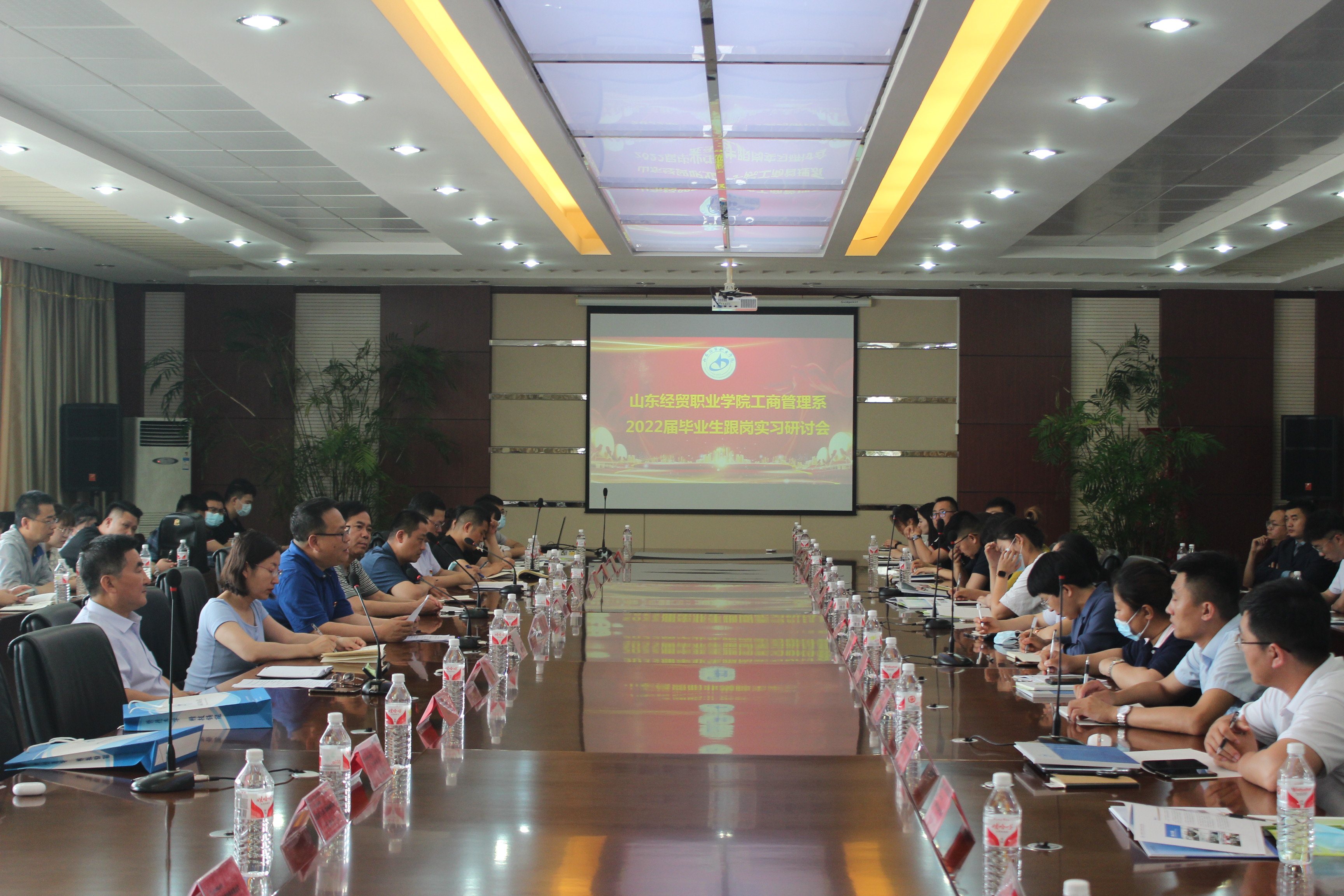 6月9日,工商管理系2019级跟岗实习研讨会在明升体育_明升国际-【app*官网】第二会议室召开,潍坊市潍城区人社局副局长王修建,明升体育_明升国际-【app*官网】副院长王炳华,教务处处长刘莹、工商管理系主任李宗顺出席会议,京东、苏宁、碧桂园、潍百集团、TCL、波司登、屈臣氏、山东博科、山东贝壳等38家规模以上企业派代表参加会议。会议由工商管理系副主任高义丰主持。