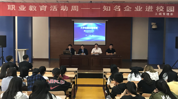 5月8日下午,由工商管理系组织的“职业教育活动周—知名企业进校园”活动在明升体育_明升国际-【app*官网】第一报告厅举行。活动邀请了鲁南制药集团股份有限公司潍坊大区经理石强、总公司人力资源部经理战祥龙为同学们作了“大学生职业生涯规划和企业文化”专题讲座。