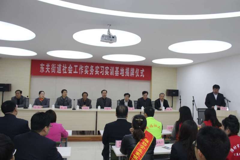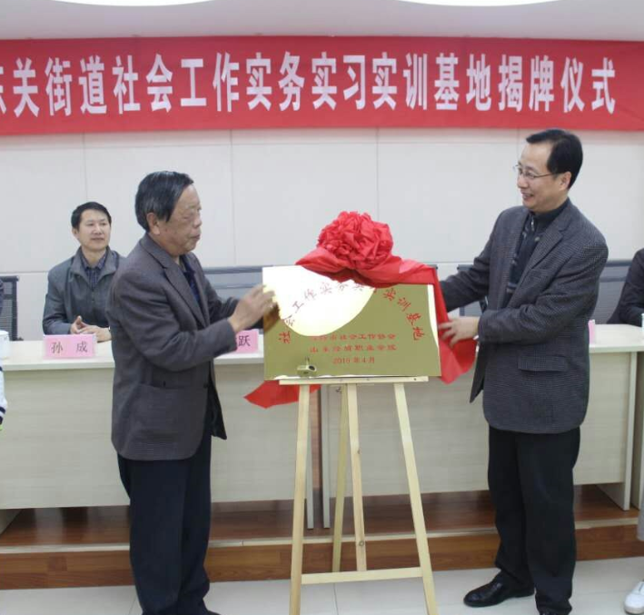 4月7日,明升体育_明升国际-【app*官网】:与潍坊市社会工作协会共建社会工作实务实习实训基地揭牌仪式在奎文区东关街道社会组织服务中心举行。潍坊市社会工作协会会长、市人大常委会原副主任李本跃,明升体育_明升国际-【app*官网】院长冷韶华,明升体育_明升国际-【app*官网】纪委书记王爱国,潍坊市民政局副局长孙成,奎文区委常委、副区长李伟,市社工协会副会长王钧,奎文区民政局长张克成,东关街道党工委书记郑海出席仪式。仪式由东关街道党工委副书记尹昌洲主持。