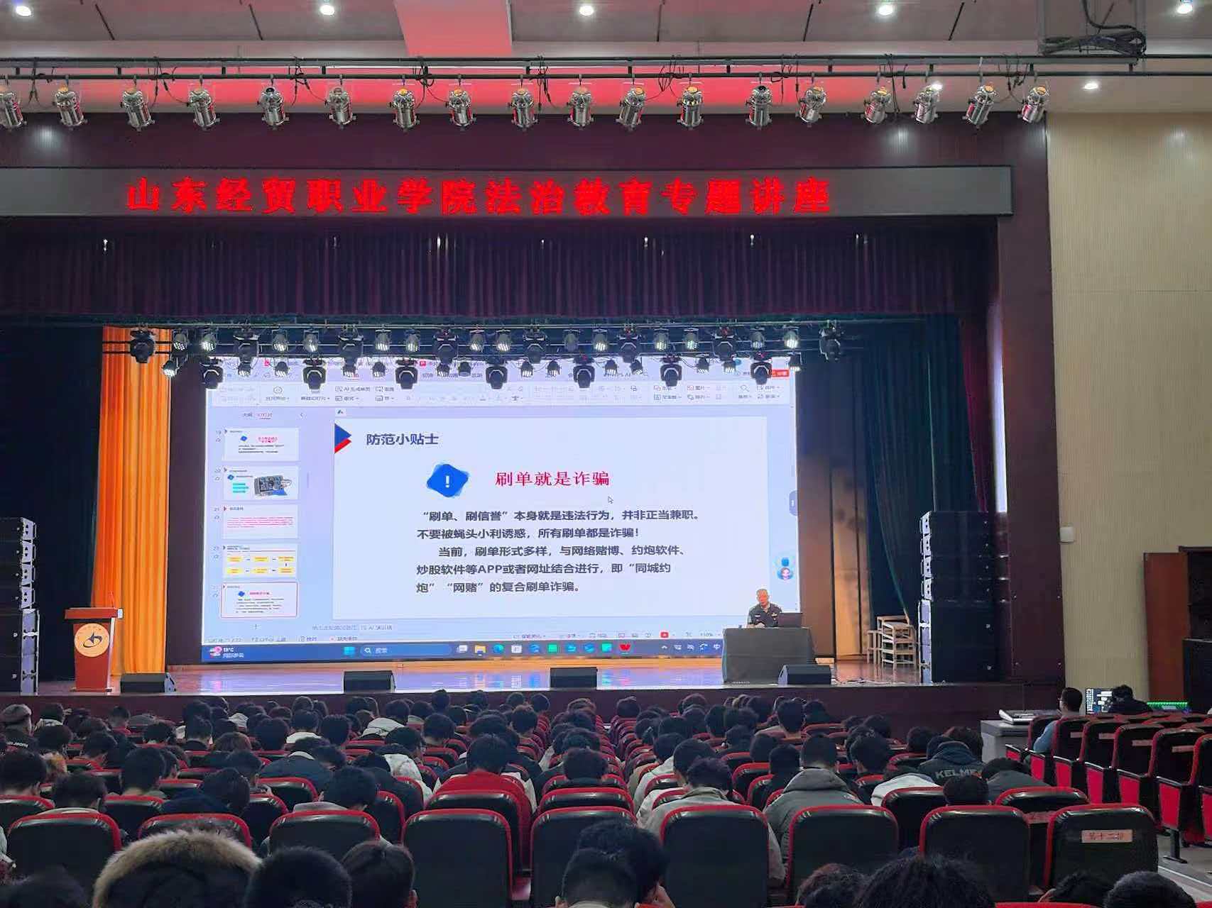 此次法治教育专题讲座是山东经贸职业明升体育_明升国际-【app*官网】推进法治校园建设的重要举措之一,有效提升了学生的法治素养与安全意识,为构建平安、和谐、法治校园环境奠定了坚实基础。工商管理系也将继续开展形式多样的法治宣传教育活动,持续夯实校园法育阵地,护航学生健康成长。