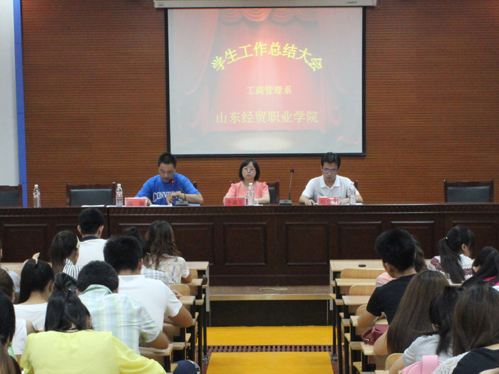 7月1日下午,工商管理系在明升体育_明升国际-【app*官网】第一报告厅召开学生工作总结大会。学生工作处副处长杨忠军、工商管理系副主任李逾男出席会议。系全体辅导员,2012级全体学生干部及2013级全体学生参加了大会。会议由系党总支副书记高巍主持。