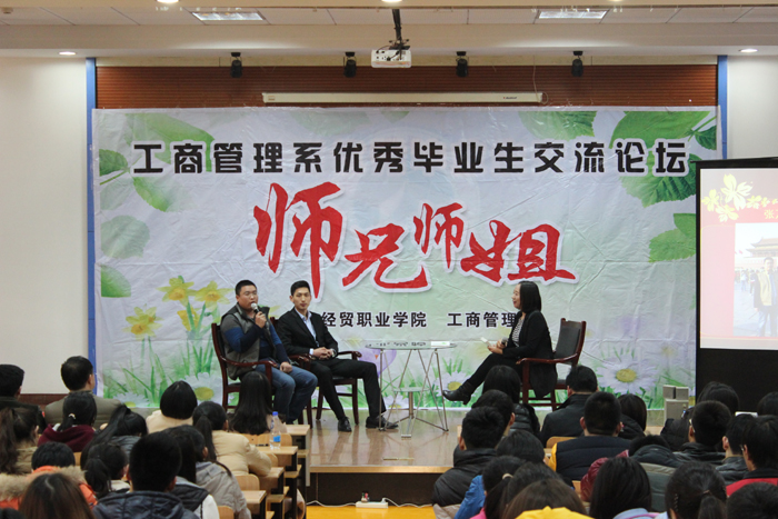 近日,工商管理系第六届优秀毕业生交流论坛——“师兄师姐”对话节目在明升体育_明升国际-【app*官网】第一报告厅举行,活动邀请五位优秀毕业生与在校学生分享成功经验,旨在通过搭建优秀毕业生与在校大学生的交流平台,实现师兄师姐与在校学生间的交流与沟通,帮助在校学生树立正确的就业观,培养创业意识,提高创业能力。