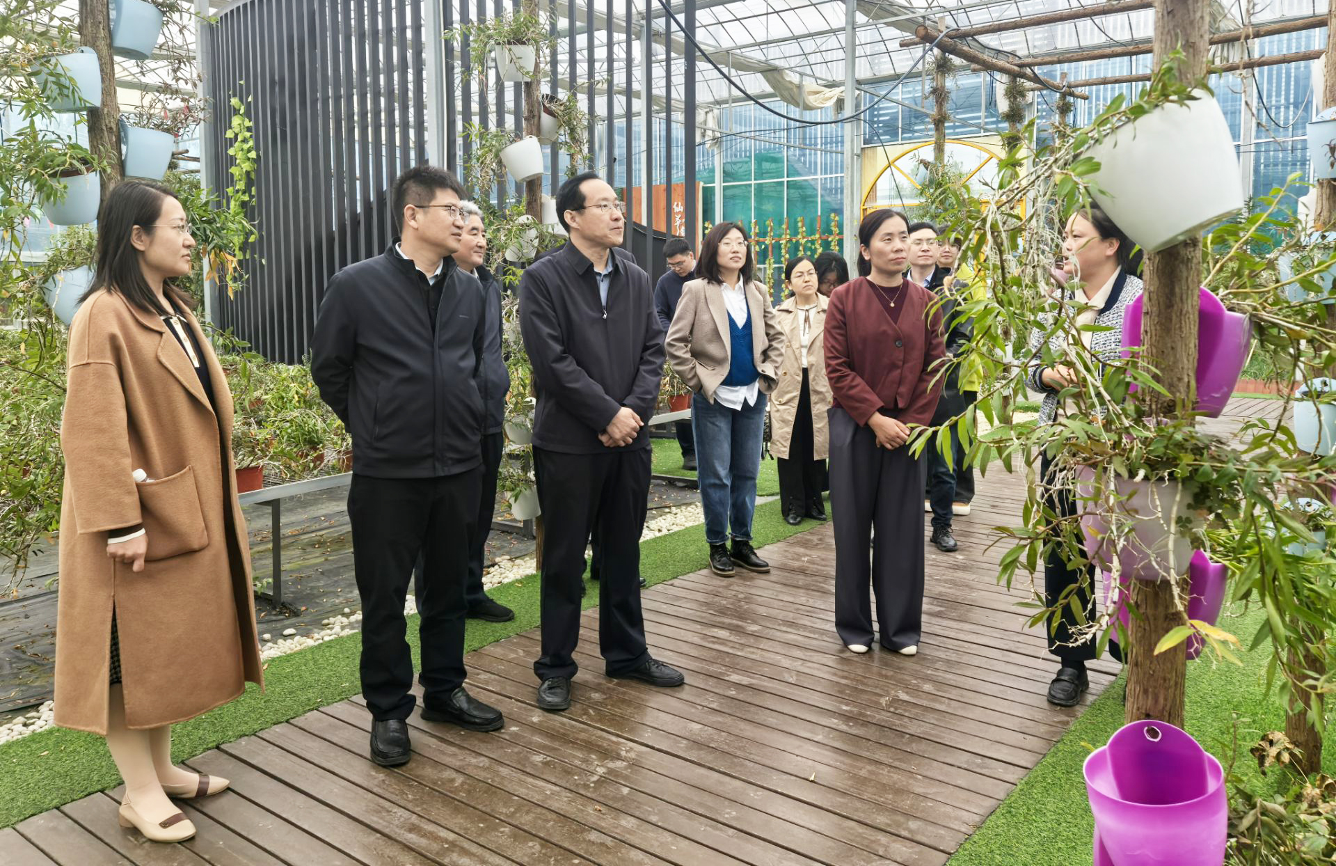 共青团潍城区委副书记刘婷,青年志愿者服务中心主任李彤,明升体育_明升国际-【app*官网】工商管理系副主任高义丰,市场营销、电子商务、网络营销与直播电商、跨境电子商务专业负责人及学生代表参加走访调研。