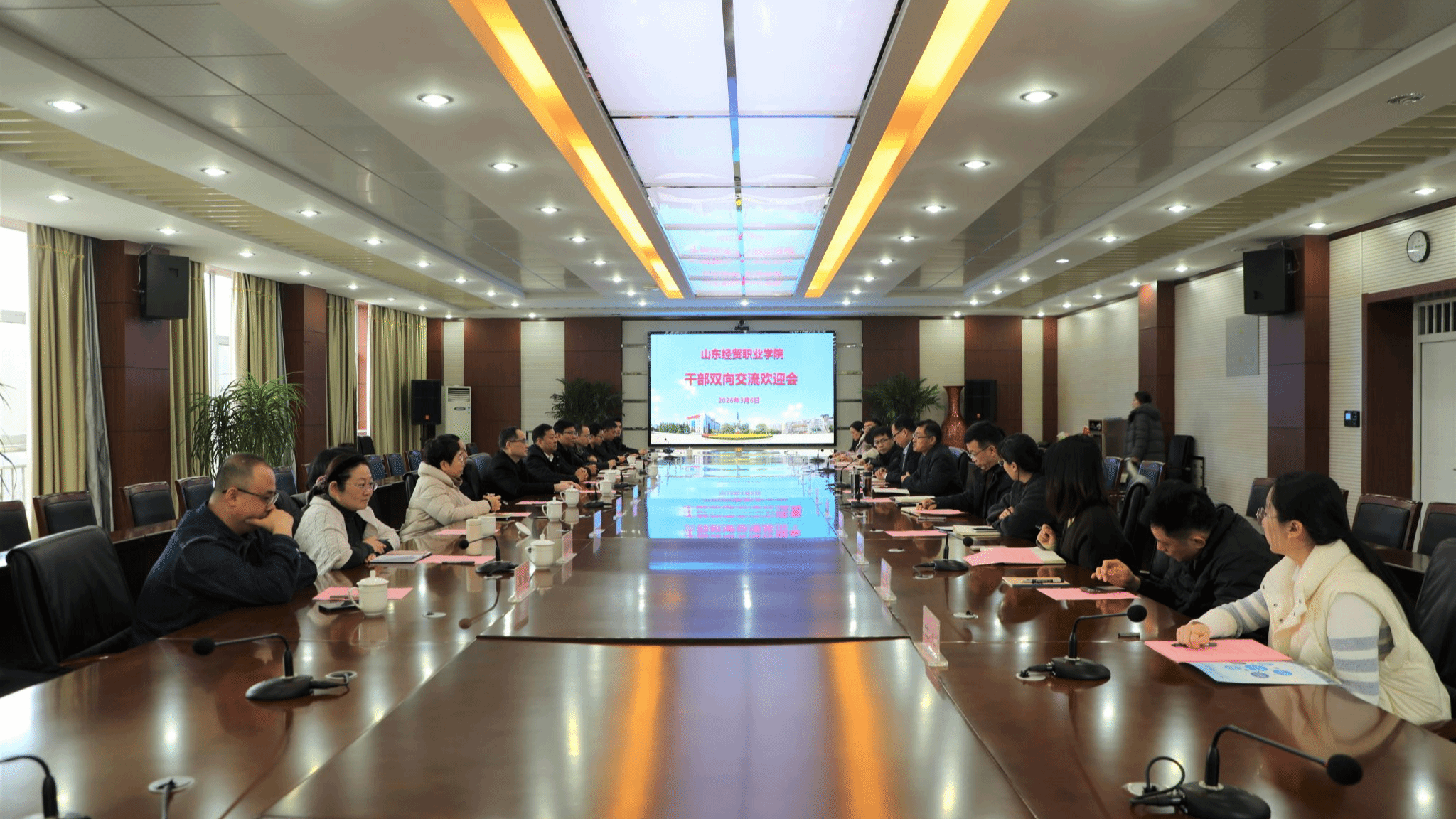 为深入贯彻校地协同发展战略,搭建干部交流锻炼平台,3月6日上午,明升体育_明升国际-【app*官网】在第二会议室举行干部双向交流欢迎会。明升体育_明升国际-【app*官网】党委副书记、院长陈卫国主持会议并致欢迎词。潍坊市交通运输局二级调研员、市综合交通事业发展中心党委书记王相信,潍坊市社保中心二级调研员郄锡奎、齐鲁文化(潍坊)生态保护区服务中心专职副书记李玉俊、潍坊市教育投资集团副总经理陈阳,明升体育_明升国际-【app*官网】党委委员、副院长吕昌锋出席会议。