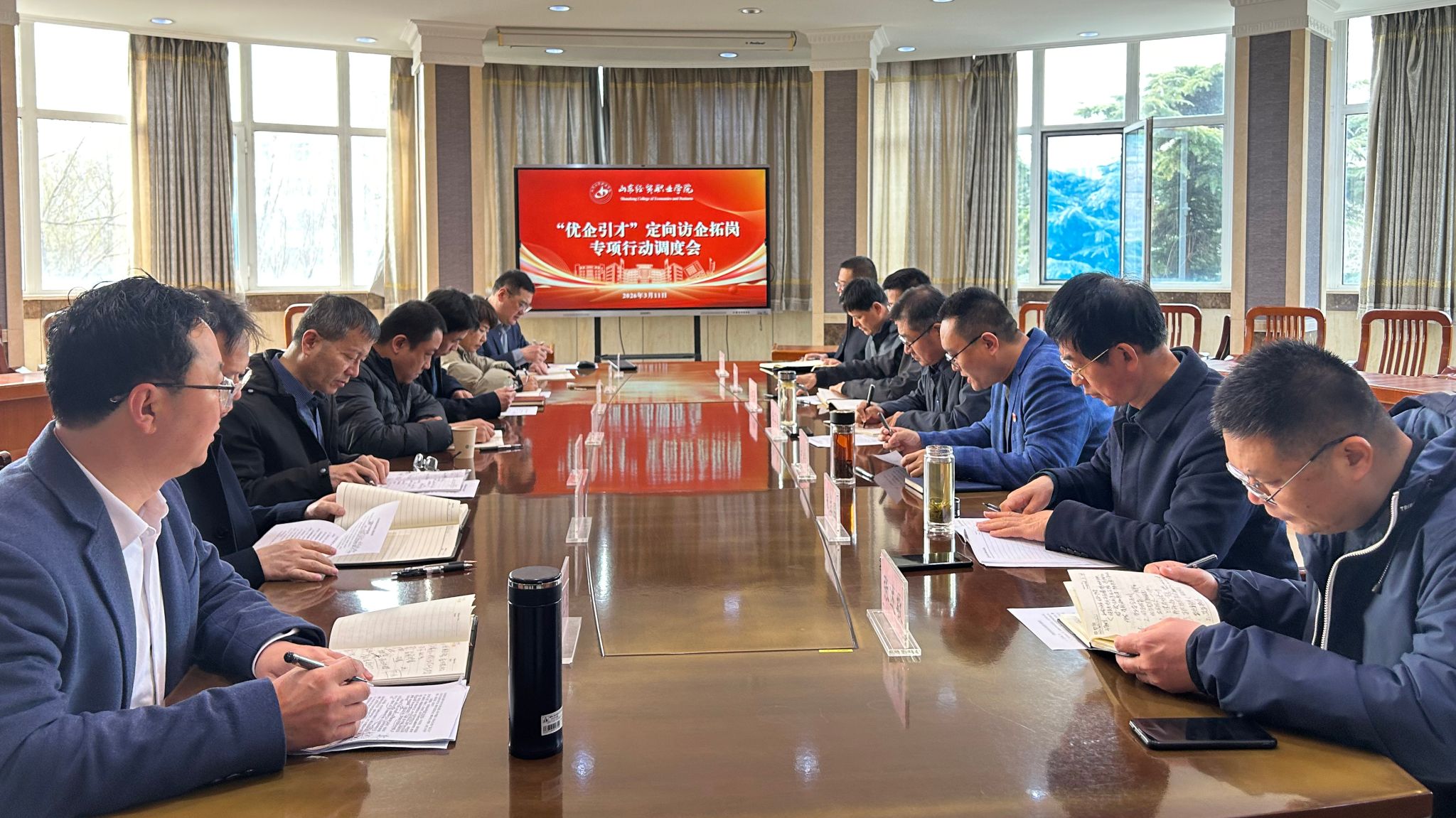 会议要求,全院上下要凝聚共识:一是提高站位,抓融合。将专项行动与人才培养、专业发展同谋划、同部署、同推进,杜绝形式主义;以专项行动为依托,深化教学关键要素改革,重点对接优质企业、规上企业及供销系统相关企业,推动校企深度合作、实习与就业有效衔接,将就业教育融入专业教学全过程,实现专业建设与就业工作同频共振。二是紧盯目标,抓落实。严格对照专项行动时间节点和数量要求,推进企业筛选、调研走访、台账建立等各环节工作,确保按时完成任务;统筹开展校园双选会、专场招聘等系列活动,落实就业困难学生“一生一策”兜底帮扶,发挥就业创业赋能中心作用,为学生就业创业提供支撑。三是压实责任,聚合力。各系领导要履行第一责任人职责,就业联络员、辅导员要各司其职、密切配合,严格审核就业佐证材料;招生就业处要做实数据周通报、规范工作流程,加强统筹协调,推动各方协同发力,筑牢就业工作底线。