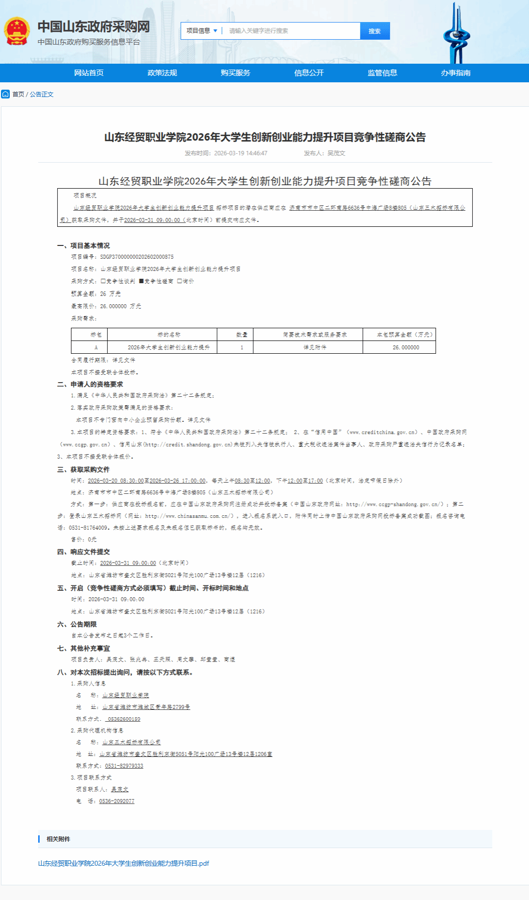 2026年大学生创新创业能力提升项目竞争性磋商公告
