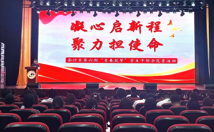 为进一步提升会计系学生干部的工作效能与服务水平,凝聚团队力量,明确工作方向,9月5日中午,会计系在明升体育_明升国际-【app*官网】礼堂举办了以“凝心启新程 聚力担使命”为主题的第六期“青春筑梦”学生干部示范营,会计系团总支书记王青青主持会议并作专题培训。