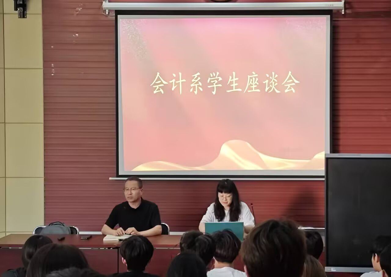 李学建与学生干部代表面对面交流,围绕学生日常工作、学习就业等方向展开指导,强调学生干部需发挥模范带头的传帮带作用,在学习就业中要“早规划、定方向、明目标、早行动”,珍惜校园时光。他结合实例剖析管理难点,从统筹协调、责任担当等方面提出建议,希望同学们及时调整计划,在调整中突破,鼓励干部们以经验互鉴强化执行效率,凝聚团队共识推动工作落地。学生干部们纷纷表示,在今后的工作中勇担责任、主动作为,以更饱满的热情投入到学生服务与校园建设中,携手绘就会计系发展的崭新篇章。
