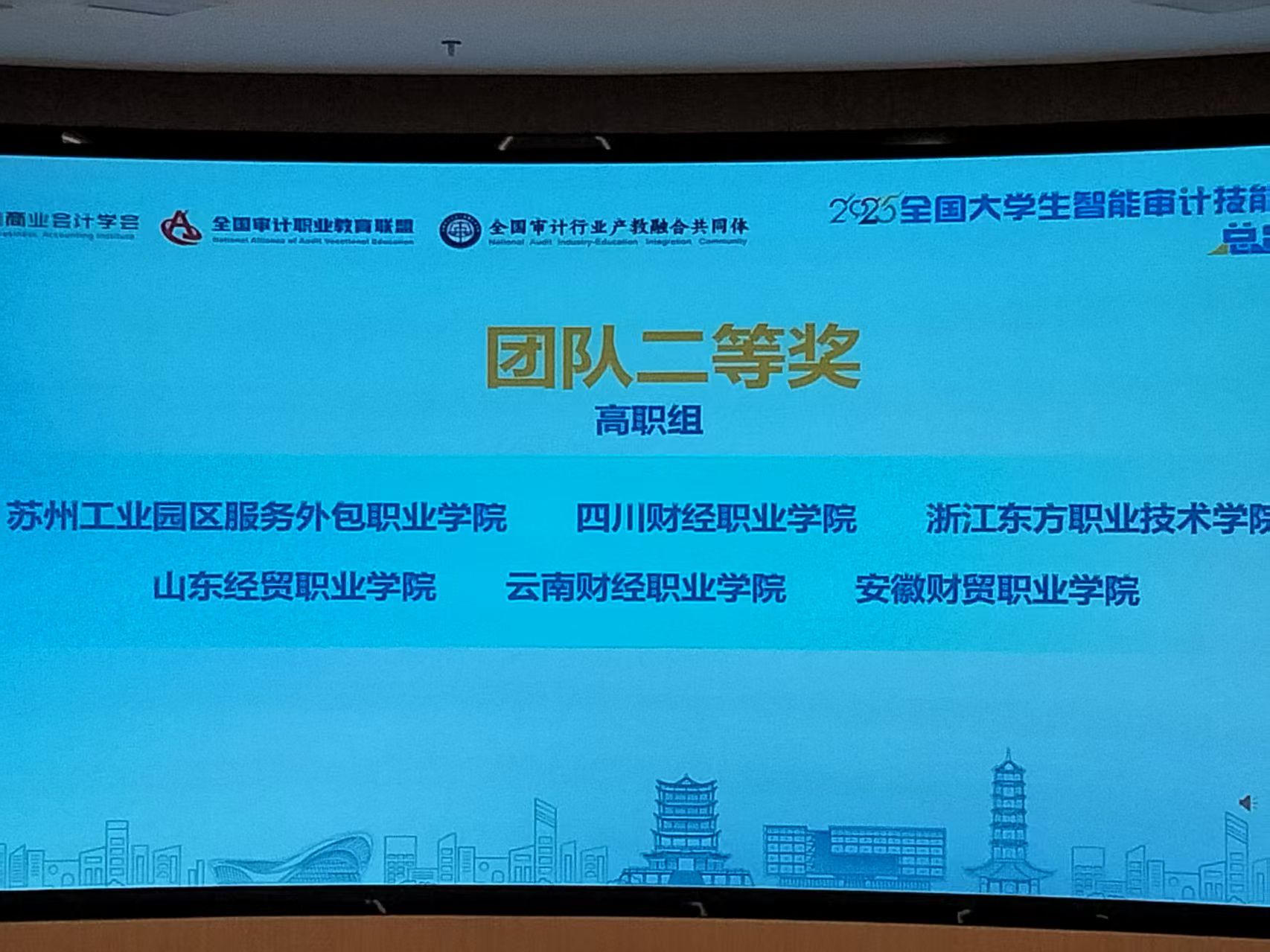 2025年6月8日,2025全国大学生智能审计技能竞赛总决赛(高职组)在安徽审计职业明升体育_明升国际-【app*官网】举办。明升体育_明升国际-【app*官网】秦敏、邵苗苗两位教师指导的2023级大数据与审计专业郭一畅、王雪丽、韩露和郭一四位同学获二等奖。