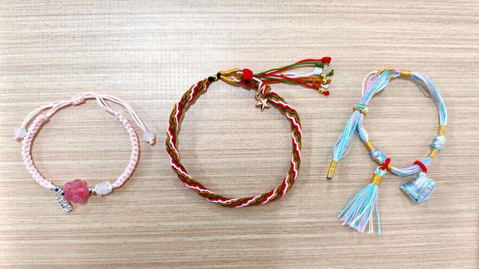 同学们用五彩丝线、剪刀、珠子等制作材料,经过努力,一根根色彩鲜艳、造型独特的五彩绳在大家手中诞生。有些加入了精致的铃铛,轻轻晃动便发出清脆悦耳的声响;部分编织成小巧的手链,简约又不失美感;还有些用小粽子点缀,更加精美独特。最终,作品《端午彩镂情》赢得了大家的一致称赞,饱含着同学们在活动中投入的热情,更寓意着手绳所承载的对传统文化的眷恋之情,彩丝线交织的不仅是精美的手工艺品,更是对传统文化的传承与热爱,以及对彼此最真挚的节日祝福。