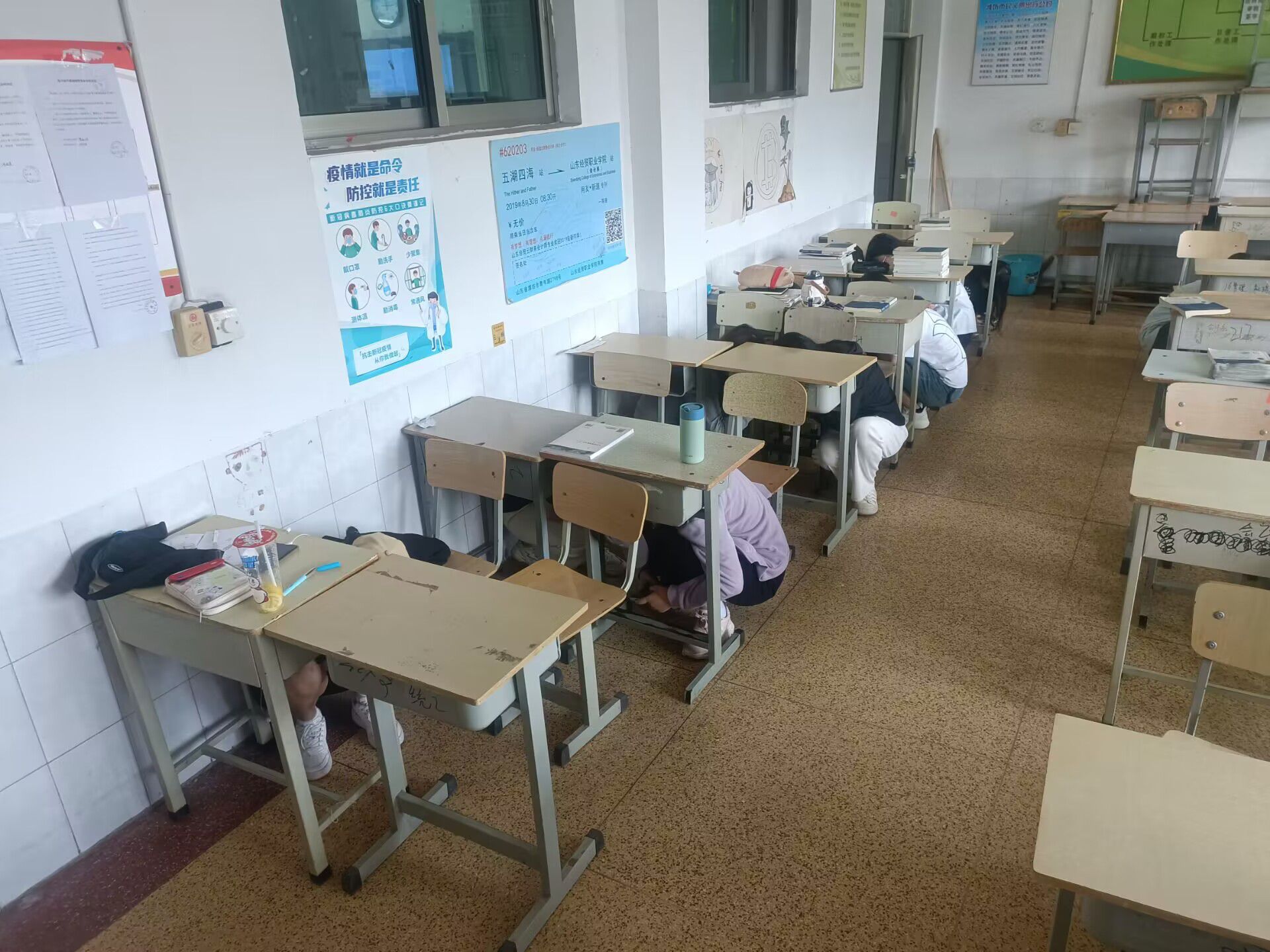 演练前各班组织专题班会进行“应急疏散演练”学习,通过ppt进行火灾、自然灾害的演示和讲解,用数据和图片等资料说明地震危害,使同学们了解应急演练必要性。