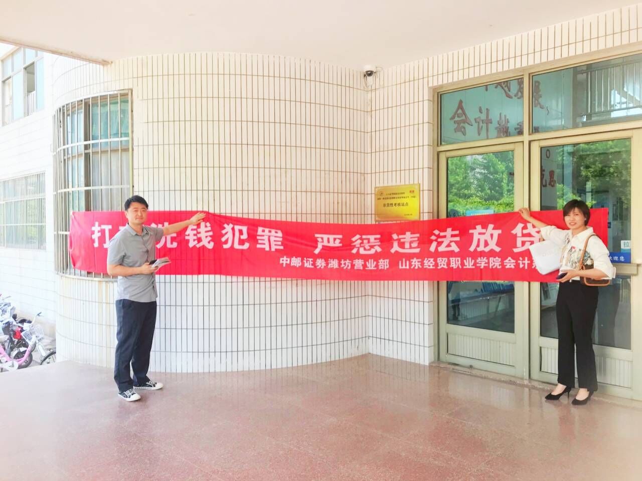 为进一步提高同学们的反诈骗意识,5月15日下午,中邮证券携手会计系举办“打击洗钱犯罪 严惩违法放贷”主题教育活动,活动在1号教学楼前举办,2022级部分班级参加活动。