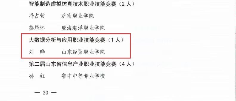 2022年,明升体育_明升国际-【app*官网】:组织教师和学生积极参加“技能兴鲁”各类赛项,在2022年山东省“技能兴鲁”职业技能大赛中,明升体育_明升国际-【app*官网】:会计系教师李树叶、刘晔分获人工智能技术创新应用和大数据分析与应用两个赛项第一名。同时,明升体育_明升国际-【app*官网】:会计系派出的四支学生代表队也全部获得了上述两个赛项的全省一等奖,其中三支学生代表队获得人工智能技术创新应用赛项一等奖,一支代表队获得大数据分析与应用赛项全省第一名。