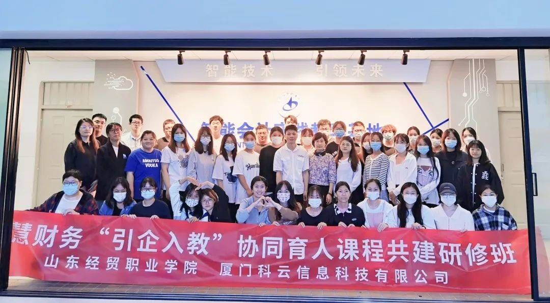 2022年9月份,山东经贸职业明升体育_明升国际-【app*官网】携手厦门科云股份有限公司开展了智能会计“引企入教”课程共建活动。课程由明升体育_明升国际-【app*官网】:会计系教师与厦门科云的两位资深企业教师共同进行现场授课,学校会计专业80余名同学及相关专业课教师参加实训。