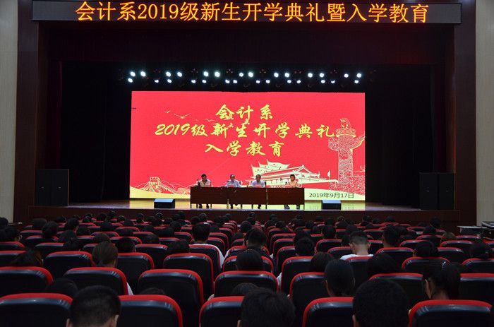 9月17日下午,会计系在明升体育_明升国际-【app*官网】礼堂召开2019级新生开学典礼暨入学教育大会。会计系主任侯君邦,电算会计教研室主任张建峰,全体辅导员出席大会。大会由系党总支书记陈志勇主持。