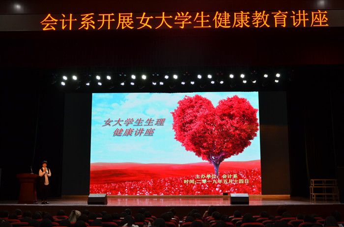 针对会计系女生比例大的特点,为提高女大学生的自我关爱意识,会计系于5月14日下午,在大学生活动中心举办了女大学生生理健康知识讲座。讲座由潍坊市妇幼保健院计划生育科主任张淑霞主讲,会计系2018级女生参加。