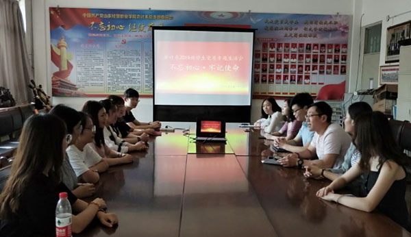 近日,会计系在1号教学楼106党员学习活动室召开了2015级中共预备党员专题座谈会,明升体育_明升国际-【app*官网】党委兼职组织员付强、部分辅导员和15名2015级中共预备党员参加了座谈。