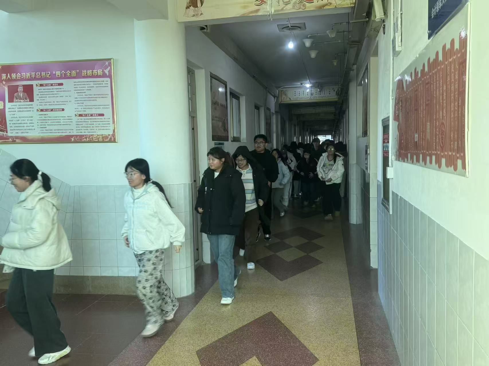 为进一步增强师生防震减灾意识,提升师生地震应急避险能力,筑牢校园安全防线,11月27日下午3点,会计系组织600余名师生在1号教学楼开展了一场紧张有序的地震应急演练。