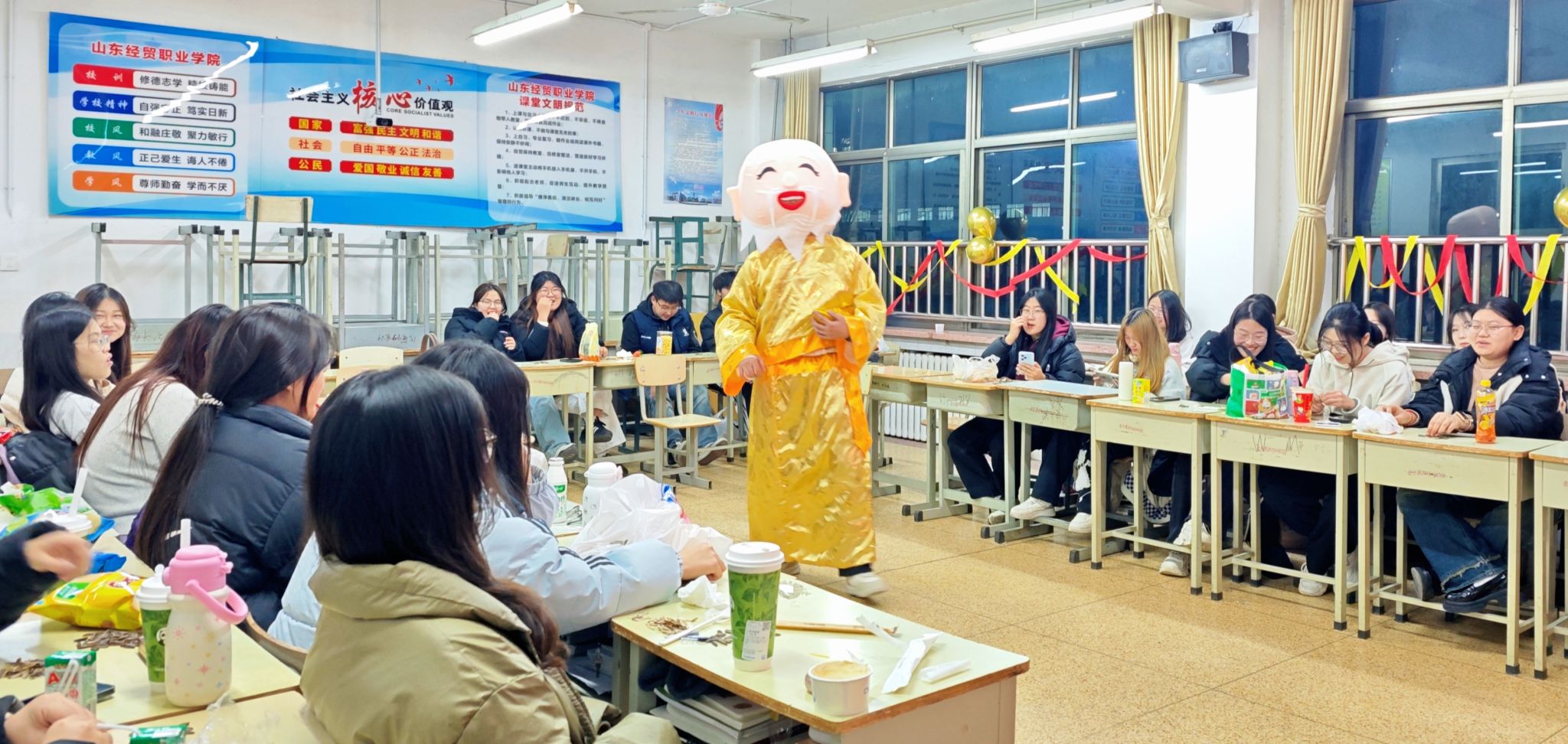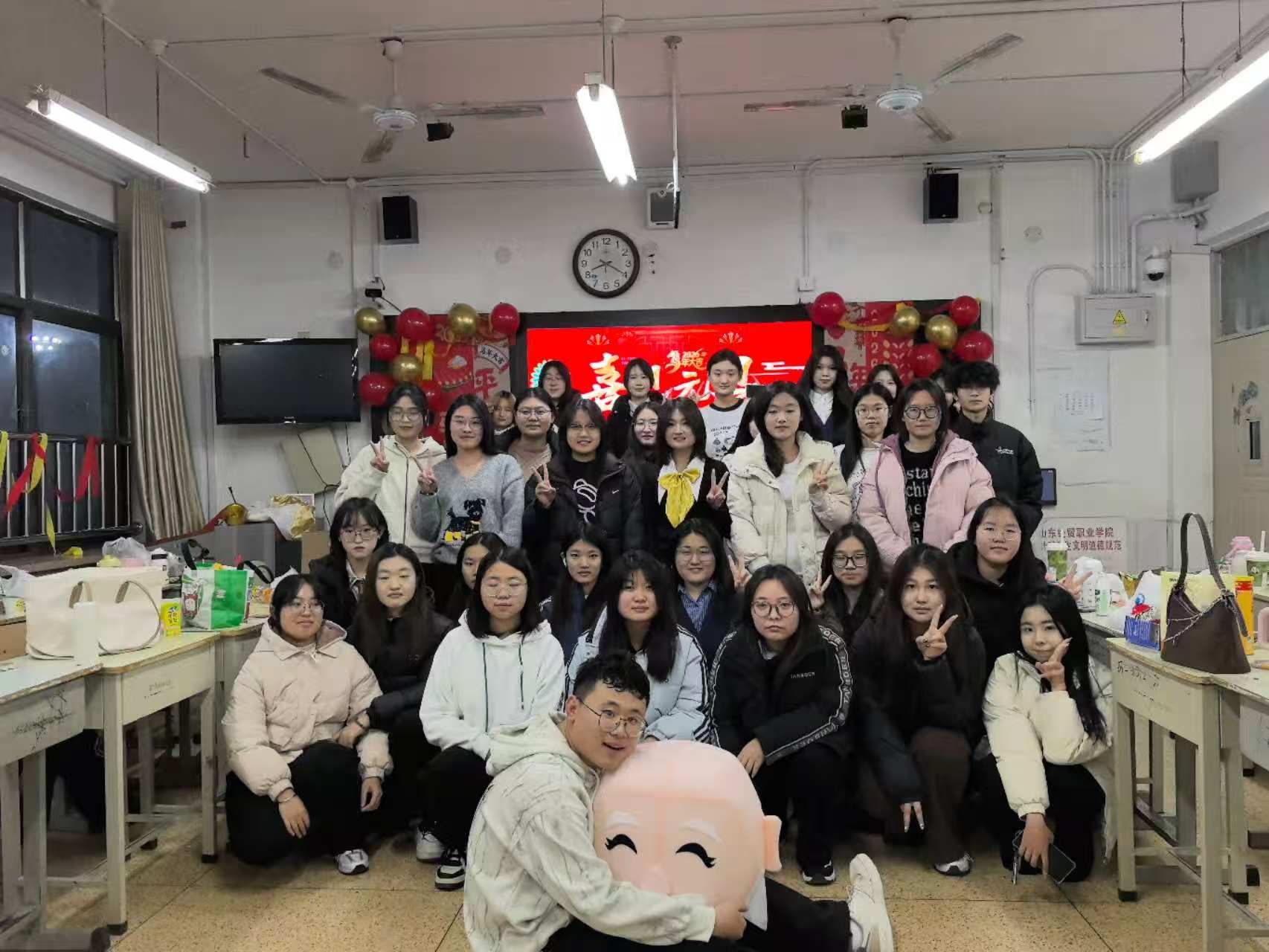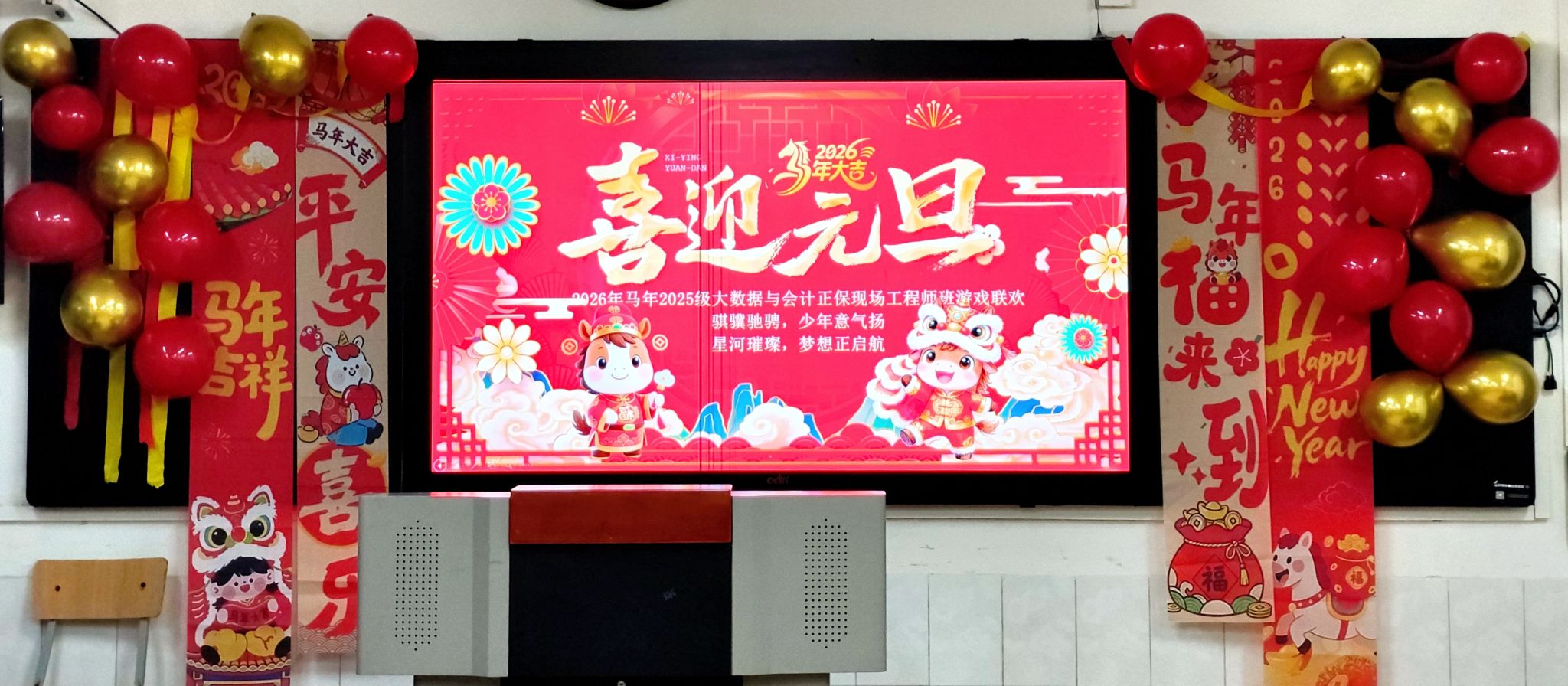 走进各个班级,一派热闹红火的景象映入眼帘。伴随着欢快的音乐,各班元旦晚会相继拉开帷幕。同学们轮番登台献艺,歌曲演唱婉转悠扬。2025级大数据与会计中外合作1班带来《我是如此相信》与《成都》,歌声里满是青春的热忱与温柔;2025级大数据与会计3班的《多幸运》轻快暖心,诉说着相遇的美好;2025级大数据与审计专本对接班合唱《稻香》,熟悉的旋律勾起温馨的回忆;2025级大数据与会计正保现场工程师班的《我怀念的》深情款款,满是怀旧的情愫,更有同学现场吹奏笛子,悠扬的笛音为现场增添了别样的韵味。此外,各班级组织了“抢凳子”“开火车”等不同形式的趣味小游戏,为元旦增添了浓浓的欢乐氛围与热闹的节日气息。