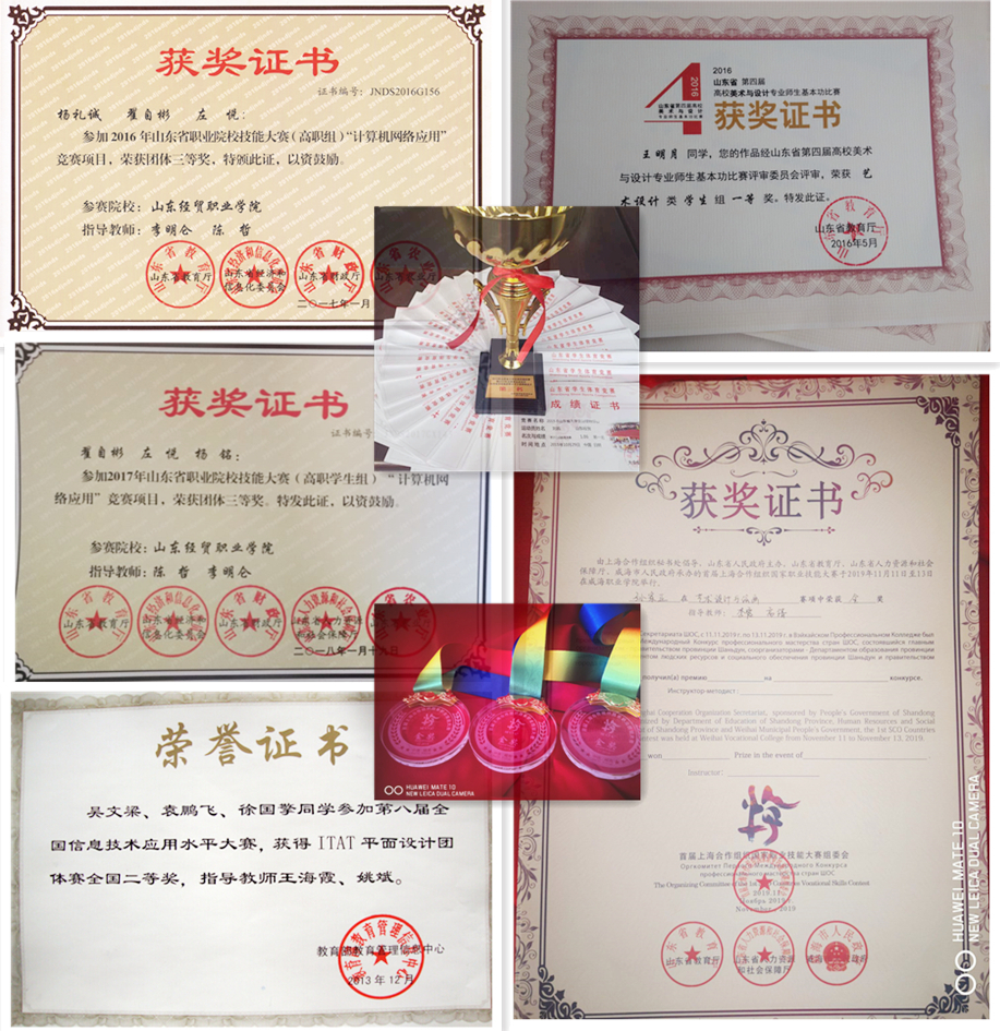 师生参加各类大赛多次获奖,参加省职业院校技能大赛(高职组)“计算机网络应用”竞赛项目,荣获团体三等奖3项;参加全国计算机应用信息技术大赛荣获国家级团体二等奖1项、三等奖1项,优秀奖1项,省级三等奖2项;艺术设计类专业学生获省级奖项,一等奖5项;二等奖6项,三等奖12项;参加全国数学建模竞赛荣获全国一等奖1项、二等奖2项、省级一等奖9项、二等奖10项、三等奖9项。参加全省学生女子篮球、女子排球比赛均荣获冠军;参加省大学生田径比赛获2金2银2铜,参加全省健美操比赛获第2名。参加省创意飞行器设计大赛荣获一等奖。参加省职业院校教师教学能力比赛荣获二等奖,参加全省思政课教师教学比赛荣获特等奖。2名学生通过HCIE(华为认证互联网专家)认证,7名学生通过了HCNP-R&S(中级)认证;5名学生获得H3CSE中级证书,多名学生获取H3CNE初级证书。