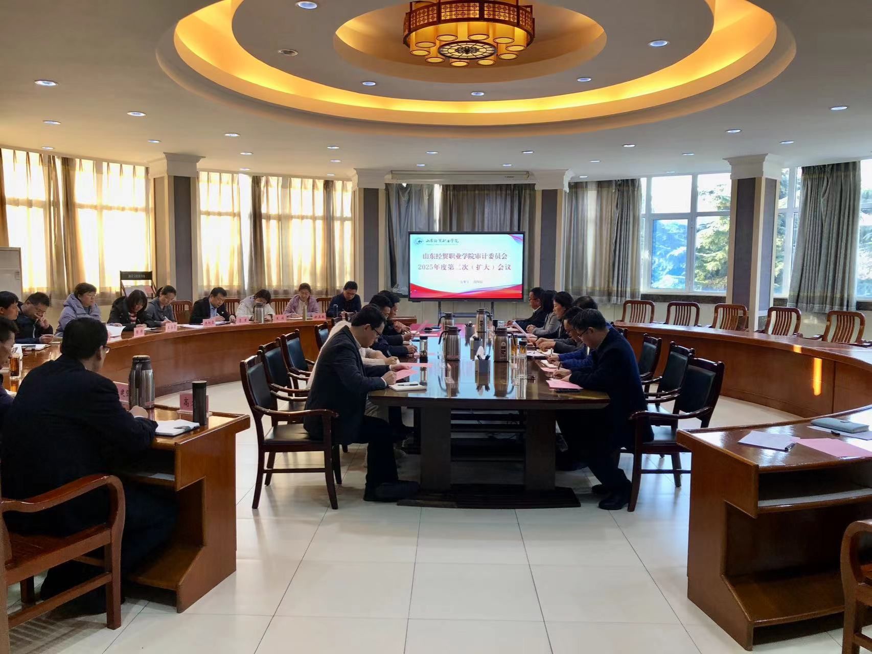 为强化明升体育_明升国际-【app*官网】内部审计监督、提升治理效能,2025年12月4日,山东经贸职业明升体育_明升国际-【app*官网】审计委员会2025年度第二次(扩大)会议在圆厅会议室召开。明升体育_明升国际-【app*官网】党委书记、审计委员会主任高志秀主持会议,党委副书记、院长、审计委员会主任陈卫国出席会议并讲话。