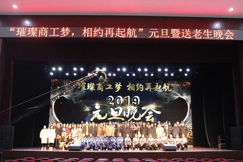 12月27日晚商务工程技术系“璀璨商工梦 相约再起航”元旦晚会在大学生活动中心隆重举行。系主任高中玖,党支部书记郭启瑞,副主任吴国华,辅导员老师及七百多学生共同观看了晚会。
