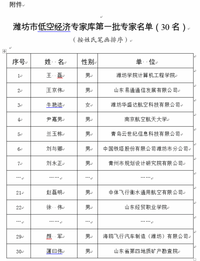 为加快推进潍坊市低空经济高质量发展,充分发挥专家在低空经济发展规划、政策制定、项目评审、技术咨询等方面的智力支撑作用,潍坊市发改委面向社会征集潍坊市低空经济领域专家。经资格审核、综合评估后,确定并公布了潍坊市低空经济领域第一批专家库成员30名。