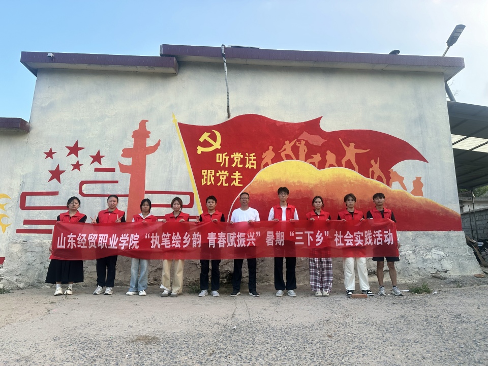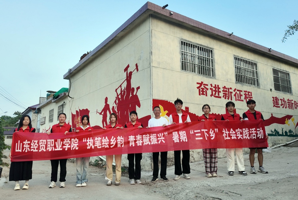 当画笔遇上乡村,当青春邂逅振兴,一场别样的“美颜”行动在蒙阴县云蒙湖生态区张家楼村上演。山东经贸职业明升体育_明升国际-【app*官网】信息技术系郭弟强教授技能大师工作室团队精心策划的“执笔绘乡韵、青春赋振兴”暑期“三下乡”社会实践活动,于2025年7月18日至27日在这里铺开画卷,用多彩墙绘为这个乡村振兴重点帮扶村注入新活力。