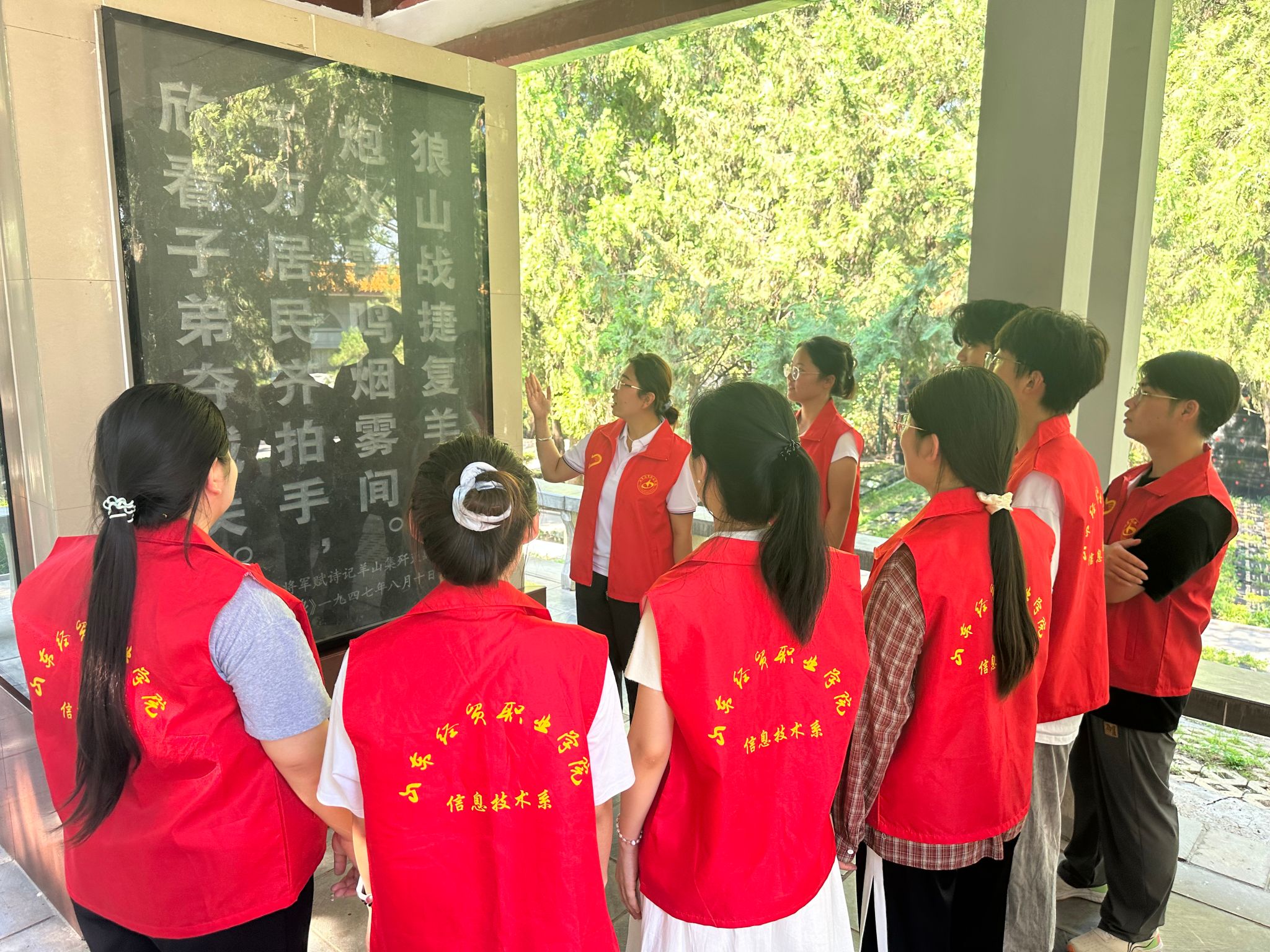 为深入贯彻落实习近平新时代中国特色社会主义思想,推动党史学习教育走深走实,充分发挥思政课铸魂育人的关键作用,2025年9月20日,信息技术系学工党支部带领学生党员及青年学子,走进济宁市金乡县羊山烈士陵园,开展了一场别开生面的“微党课”教学活动。此次活动旨在通过实地探访革命遗址、聆听经典战役故事,让青年一代在沉浸式的历史场景中感悟初心使命,汲取奋进力量。
