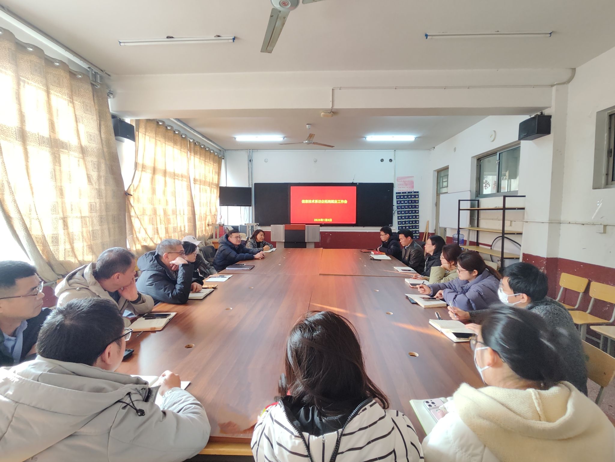 为积极应对就业市场新形势,深化校企合作,拓宽毕业生就业渠道,提升人才培养与市场需求的契合度,1月6日,信息技术系召开了2026年访企拓岗专项行动部署会。系党政领导班子全体成员、各专业负责人、毕业班辅导员参加会议。
